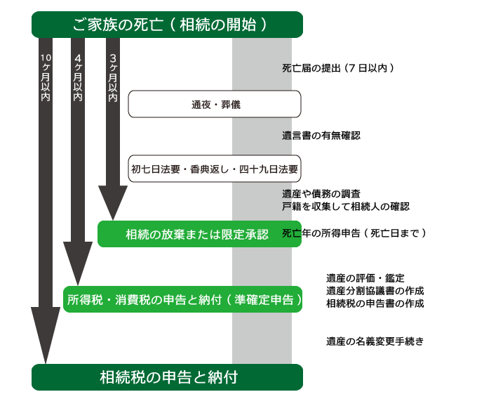 相続税の申告期限は、原則として死亡後10ヶ月ですが、その間に行う手続きは多岐に渡るため、スケジュール計画をしっかりと行う必要があります。
